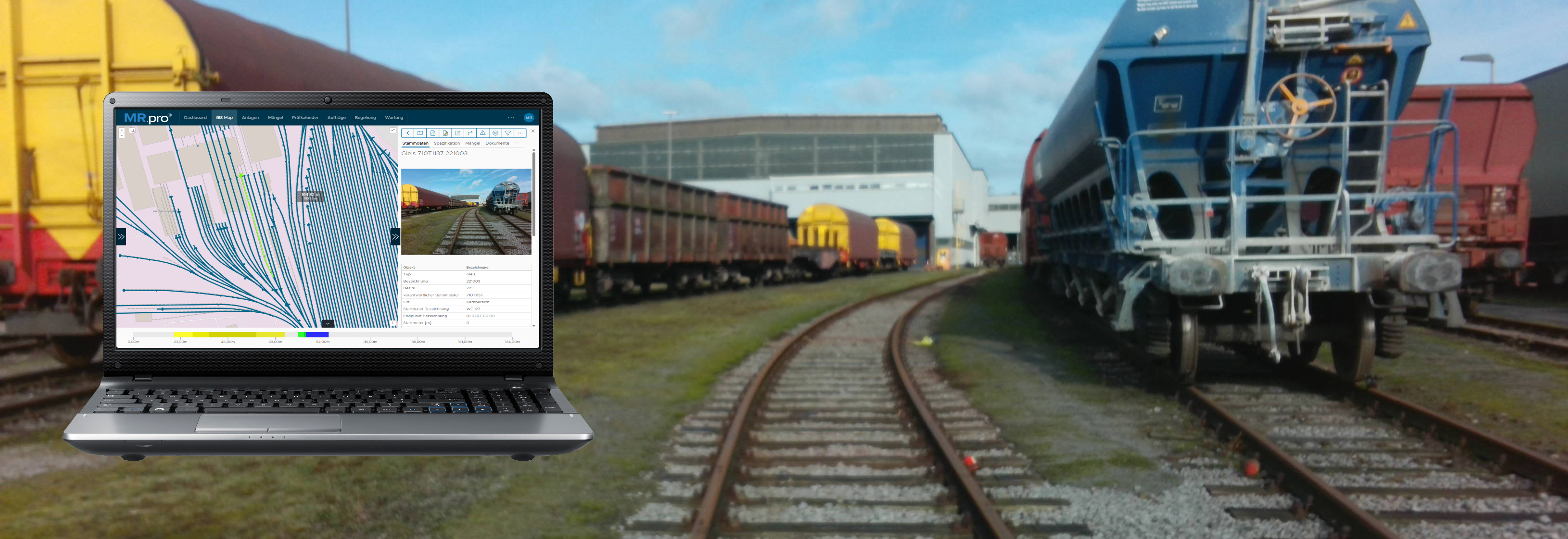 MR.pro® ist eine Asset-Management Software, die auf das Gesamtsystem Bahninfrastruktur ausgelegt und dennoch so aufgebaut ist, dass sie den spezifischen Anforderungen jeder Anlagenart und -gattung entspricht. Damit ist die Software in der Lage den Anlagenverantwortlichen alle notwendigen Informationen zu geben und Zusammenhänge aufzuzeigen (Big Picture). Realisiert wird dies durch einen integrierten Workflow mit einem minimalen Datenpflegeaufwand, da die einmal erfassten Daten durchgängig im gesamten Instandhaltungsprozess verwendet werden und eine Doppelerfassung entfällt.